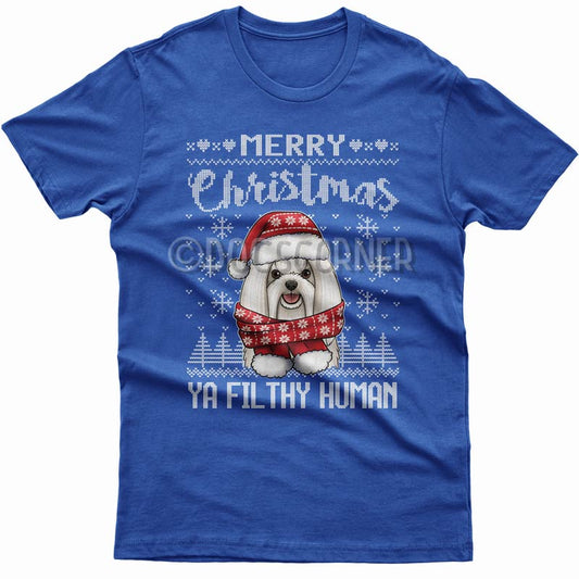 Merry Christmas you filthy human T-shirt (Maltese/Shih Tzu)