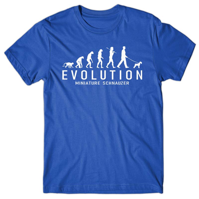 Human evolution, the process by which human beings developed from apes. At some stage, dogs joined our ancestors to become our helpers, best friends, and loyal companions. Why not show the process of Miniature Schnauzer evolution on your favourite T-shirt? Our team is very proud to offer you a collection of 40+ dog breeds, one of the largest in Australia. Your order will be printed using the latest direct-to-garment printing technology and dispatched from our Melbourne workshop within 2-3 business days. We guarantee that you will be pleasantly surprised by the quality of our products!