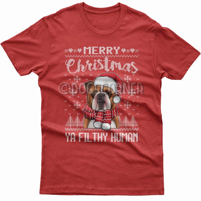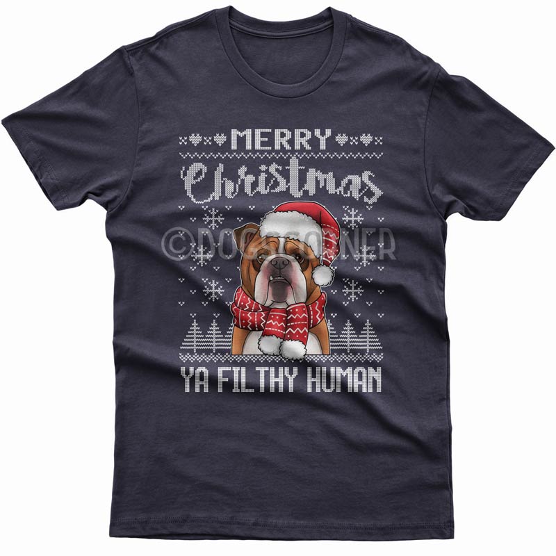 Merry Christmas you filthy human T-shirt (Bulldog)