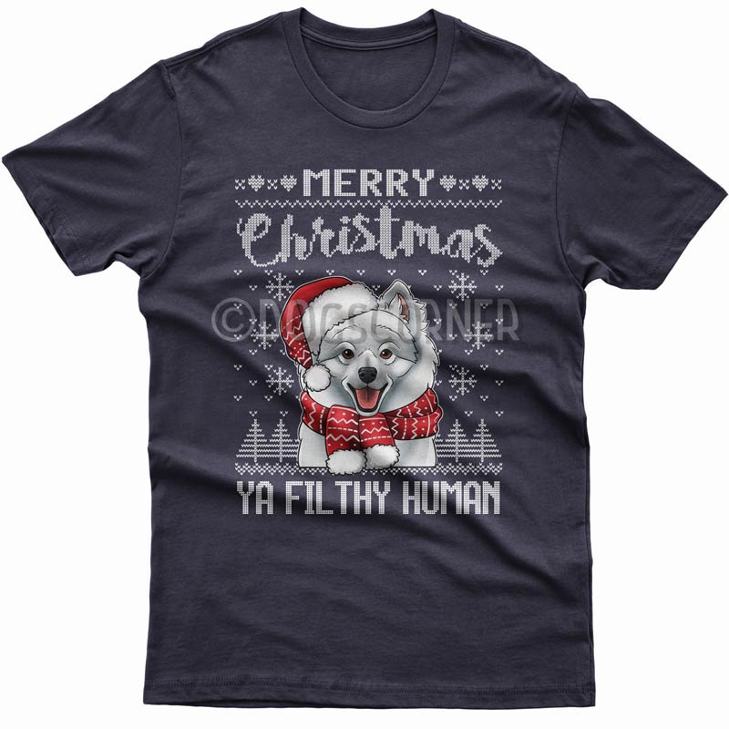 Merry Christmas you filthy human T-shirt (Japanese Spitz)