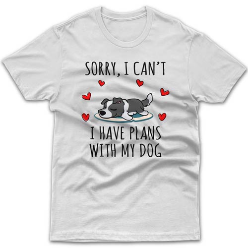 What is a best gift idea for a Border Collie owner who seems to have everything? Without a doubt it must be something related to their fur baby - novelty coffee mug, a piece of clothing, tote bag or another dog-related product. Your introverted friend will especially appreciate this cool T-shirt with "Sorry I can't, I have plans with my dog today" message and his/her favourite breed printed on it. Its top-notch quality will satisfy the most demanding customers. Forget about cheaply made Chinese garments with ridiculous delivery times. All orders are dispatched within 1-3 business days from our Melbourne workshop.