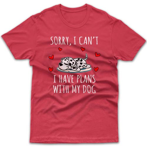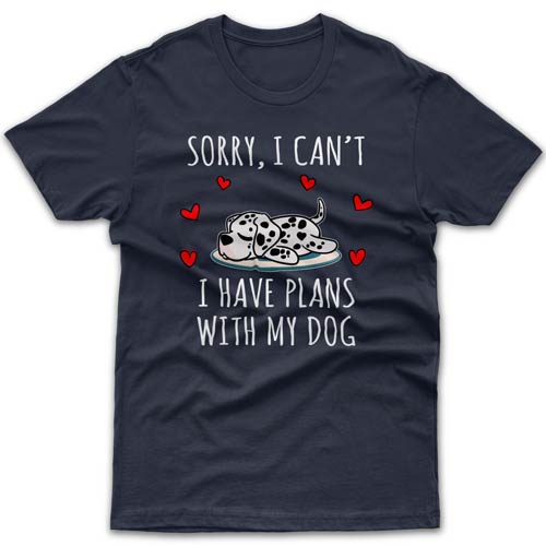 What is a best gift idea for a Dalmatian owner who seems to have everything? Without a doubt it must be something related to their fur baby - novelty coffee mug, a piece of clothing, tote bag or another dog-related product. Your introverted friend will especially appreciate this cool T-shirt with "Sorry I can't, I have plans with my dog today" message and his/her favourite breed printed on it. Its top-notch quality will satisfy the most demanding customers. Forget about cheaply made Chinese garments with ridiculous delivery times. All orders are dispatched within 1-3 business days from our Melbourne workshop.
