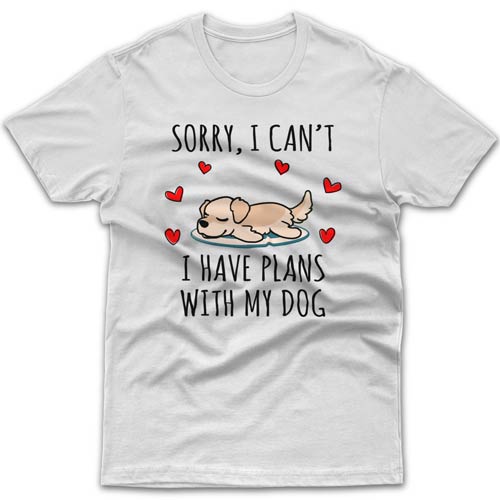 What is a best gift idea for a Golden Retriever owner who seems to have everything? Without a doubt it must be something related to their fur baby - novelty coffee mug, a piece of clothing, tote bag or another dog-related product. Your introverted friend will especially appreciate this cool T-shirt with "Sorry I can't, I have plans with my dog today" message and his/her favourite breed printed on it. Its top-notch quality will satisfy the most demanding customers. Forget about cheaply made Chinese garments with ridiculous delivery times. All orders are dispatched within 1-3 business days from our Melbourne workshop.