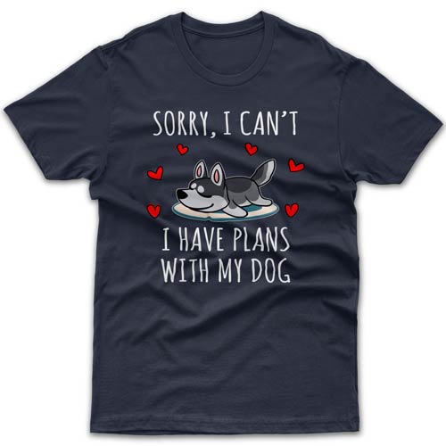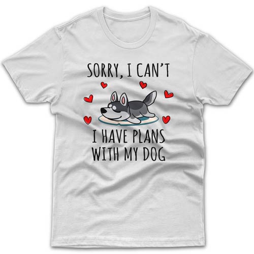 What is a best gift idea for a Husky owner who seems to have everything? Without a doubt it must be something related to their fur baby - novelty coffee mug, a piece of clothing, tote bag or another dog-related product. Your introverted friend will especially appreciate this cool T-shirt with "Sorry I can't, I have plans with my dog today" message and his/her favourite breed printed on it. Its top-notch quality will satisfy the most demanding customers. Forget about cheaply made Chinese garments with ridiculous delivery times. All orders are dispatched within 1-3 business days from our Melbourne workshop.