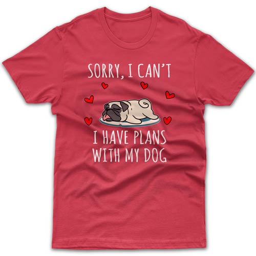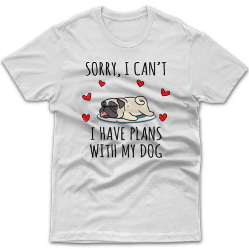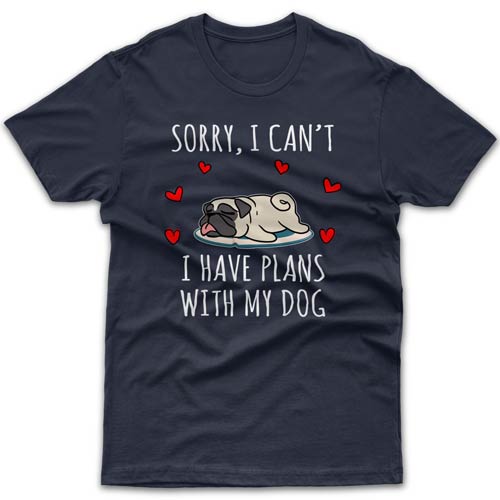 What is a best gift idea for a Pug owner who seems to have everything? Without a doubt it must be something related to their fur baby - novelty coffee mug, a piece of clothing, tote bag or another dog-related product. Your introverted friend will especially appreciate this cool T-shirt with "Sorry I can't, I have plans with my dog today" message and his/her favourite breed printed on it. Its top-notch quality will satisfy the most demanding customers. Forget about cheaply made Chinese garments with ridiculous delivery times. All orders are dispatched within 1-3 business days from our Melbourne workshop.
